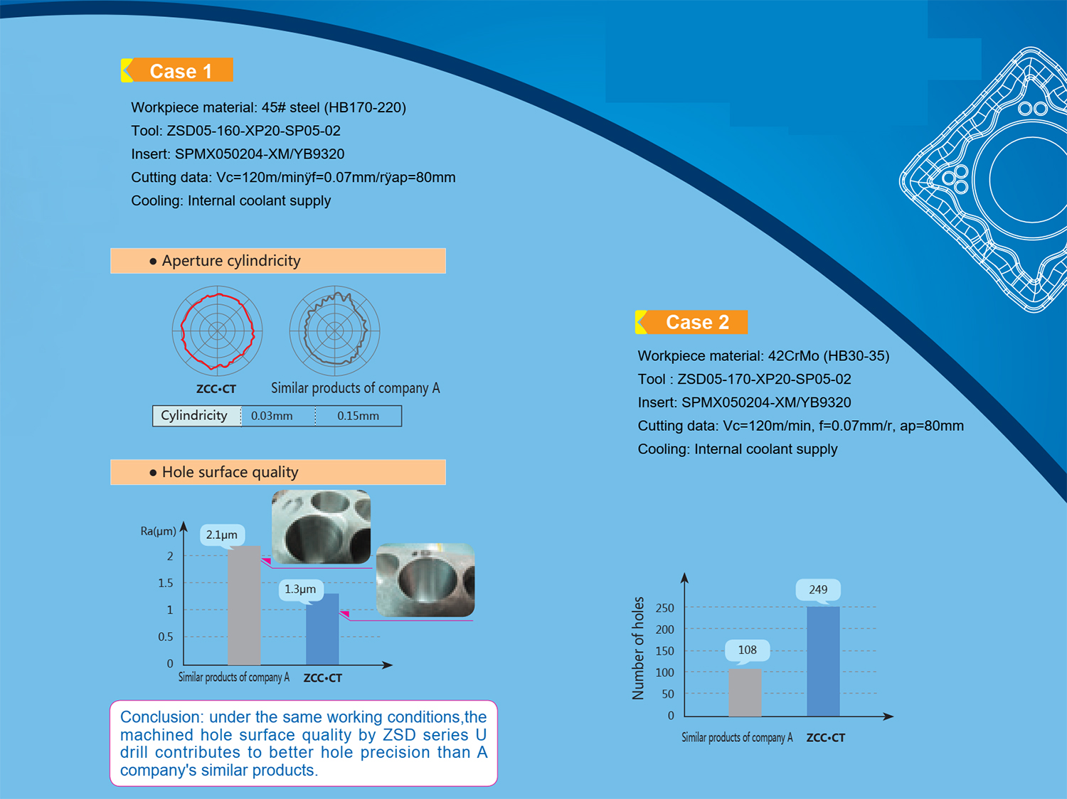 • Apply wiper technology, excellent hole surface quality and hole diameter dimension consistency.